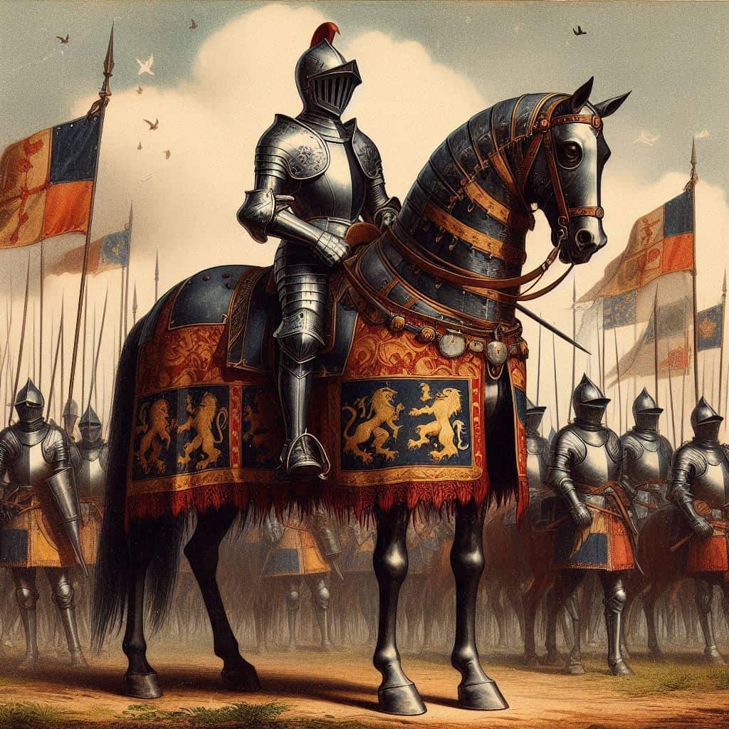The Armour used that covered a knight’s horse breast and flanks were called a Bard