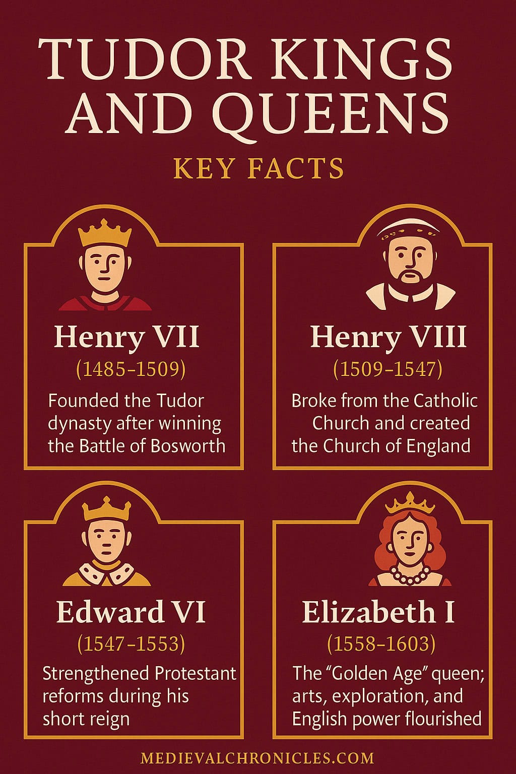 This expanded guide explores each Tudor monarch, their achievements, their failures, and the defining events of their century-long rule.