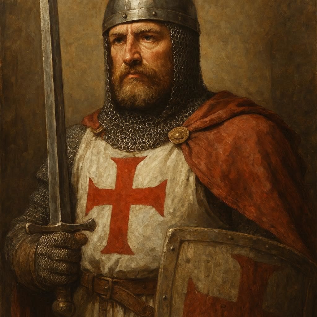 Godfrey of Bouillon (1060–1100) was a French nobleman, warrior, and one of the most prominent leaders of the First Crusade, launched in 1096 to reclaim Jerusalem from Muslim control. Born into the powerful House of Boulogne, Godfrey sold his lands to fund his crusading expedition and soon earned fame for his courage, faith, and battlefield skill. After the successful capture of Jerusalem in 1099, he refused to be crowned king, humbly taking the title “Defender of the Holy Sepulchre” instead. Revered for his piety and chivalry, Godfrey of Bouillon became a symbol of the Christian knight — devoted, fearless, and just — whose actions helped shape the course of medieval Christendom and the Crusader States in the Holy Land.