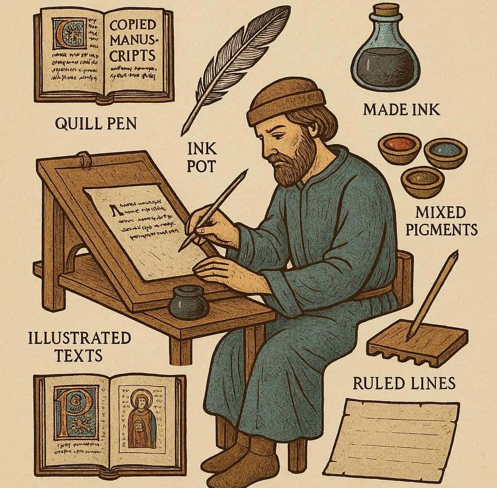 Scribes recorded legal documents, contracts, and accounts. In an age when literacy was rare, scribes were vital for communication and record-keeping.