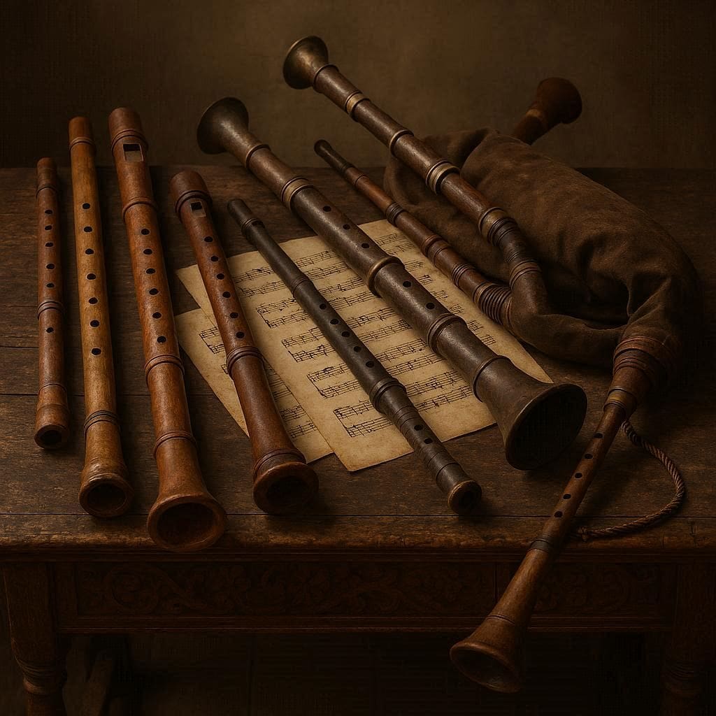 Soft medieval instruments intended for indoor performance and intimate settings.