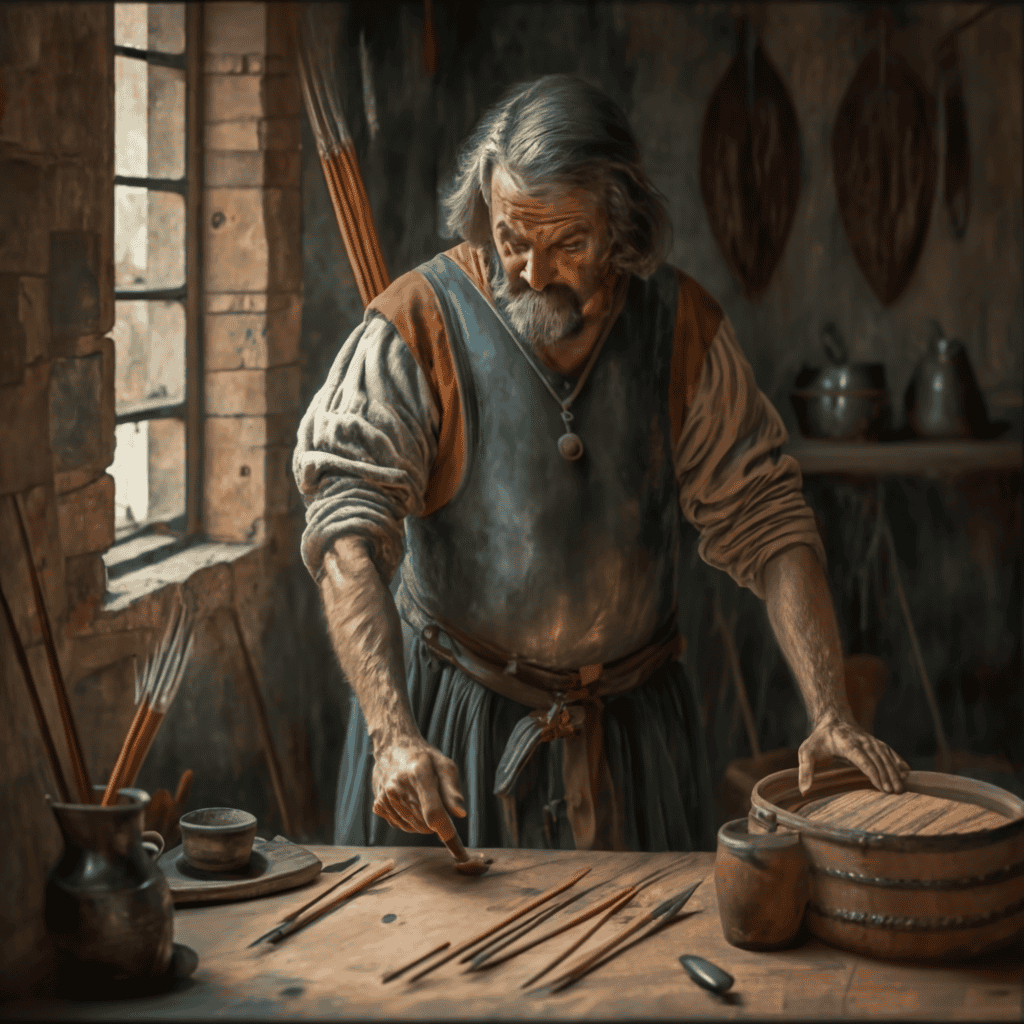 The bowyer made the bows, while the fletcher made the arrows. Both trades were crucial and often worked closely together, but their skills were distinct and specialized — one focused on flexibility and tension, the other on balance and precision.