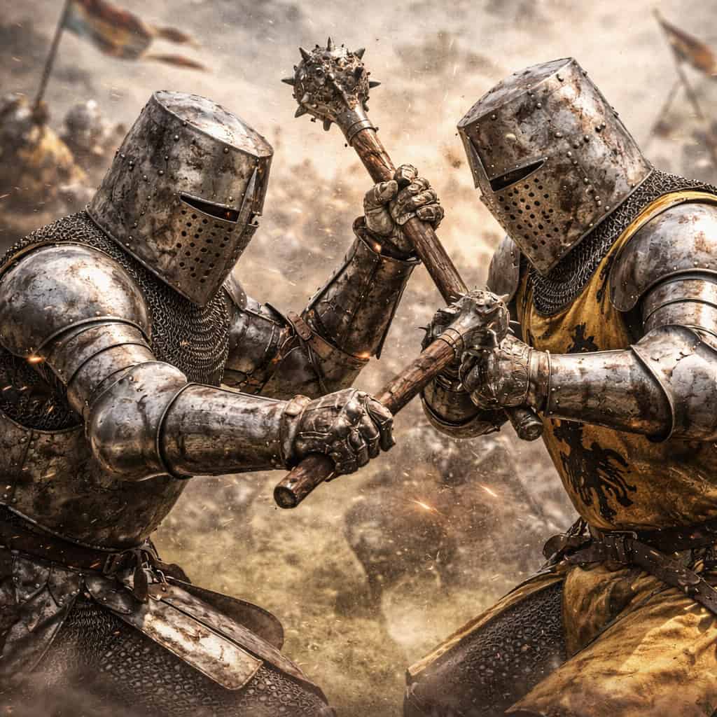 2 knights fighting with each other using maces